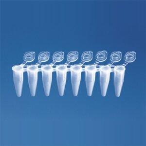 BrandTech PCR Rigid Tube 0.15 ml white low profile , Strip of 8 Tubes, Snap Flat Caps DNase and RNase free Pk x 120 strips