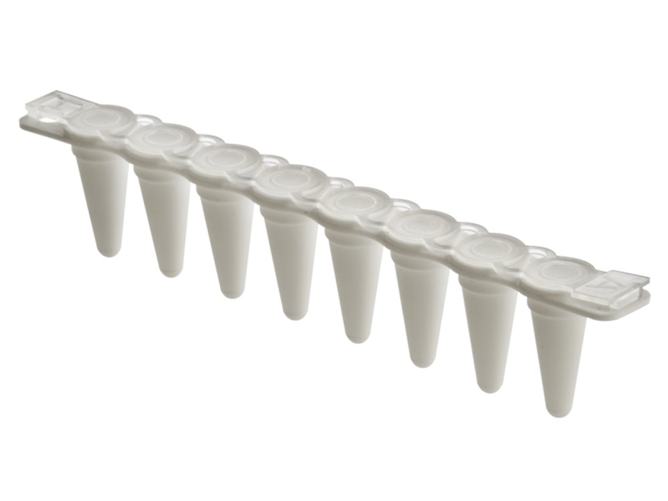 Extragene Tubo PCR blanco de pared fina de perfil bajo de 0,1 ml, tira de 8 tubos, tapas planas, libre de DNase y RNase, paquete de 125 tiras